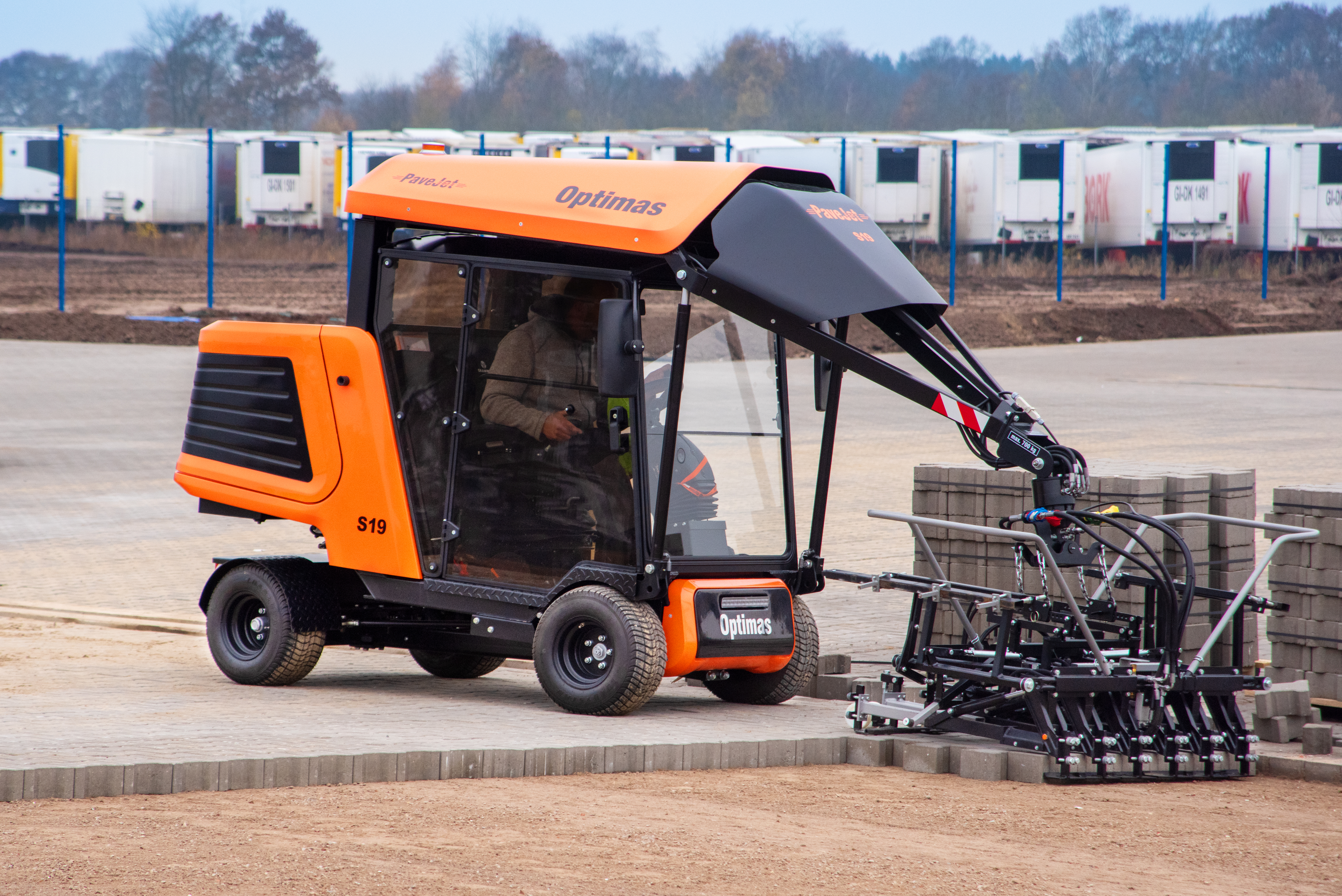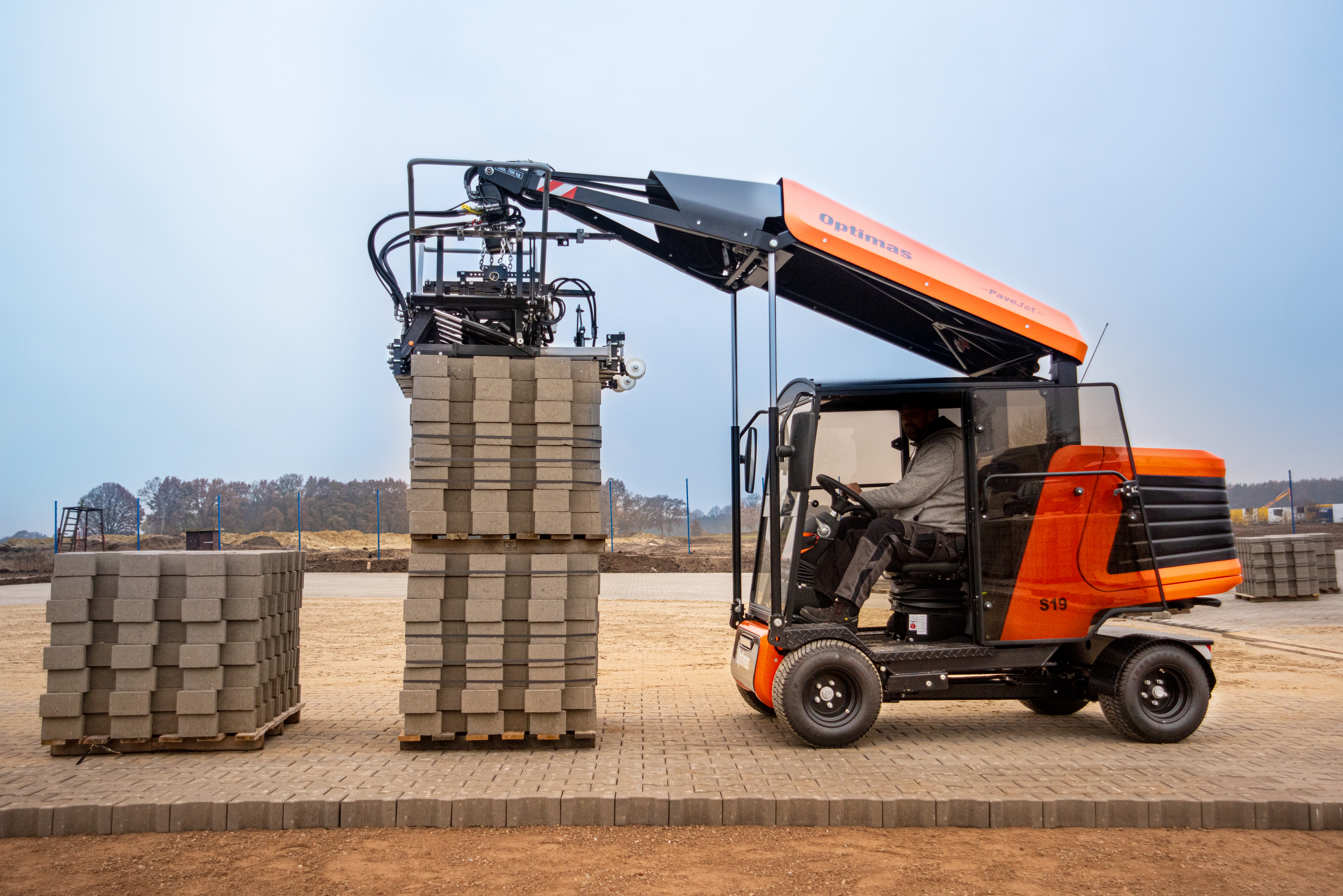 Układarka kostki brukowej S19 jest nadzwyczaj szybka i układa kostkę łatwo i precyzyjnie w rekordowym czasie.