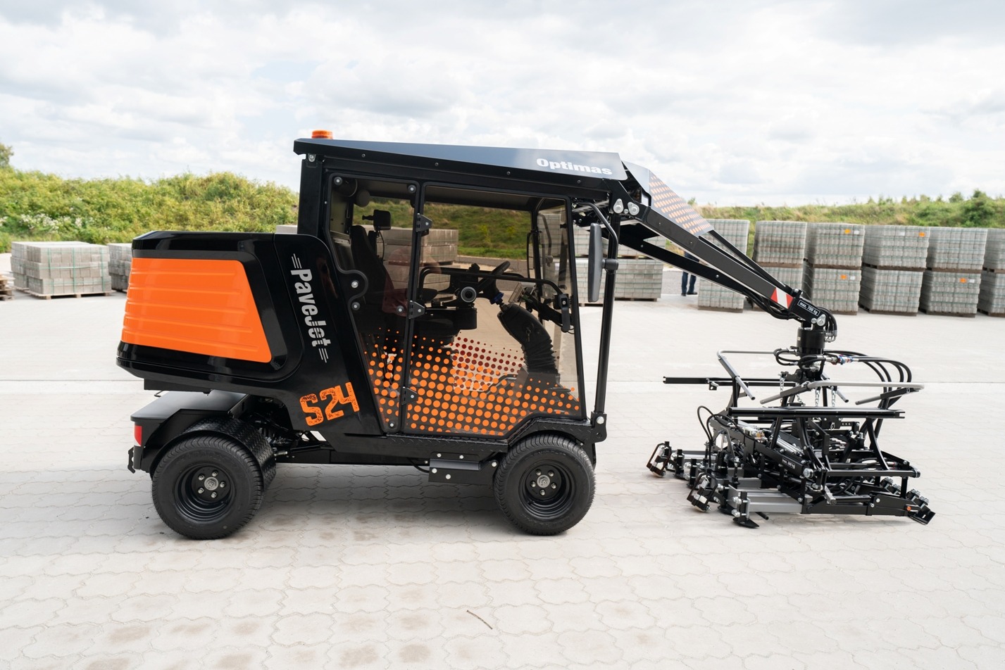 Układarka do kostki brukowej Optimas wyznacza standardy od 1978 roku. A jak to często bywa z oryginałami – nie stają się lepsze przez kopiowanie, lecz przez ciągły rozwój. Inżynierowie Optimas udoskonalili PaveJet S24 pod względem technicznym, a projektanci nadali jej nowoczesny, funkcjonalny wygląd.