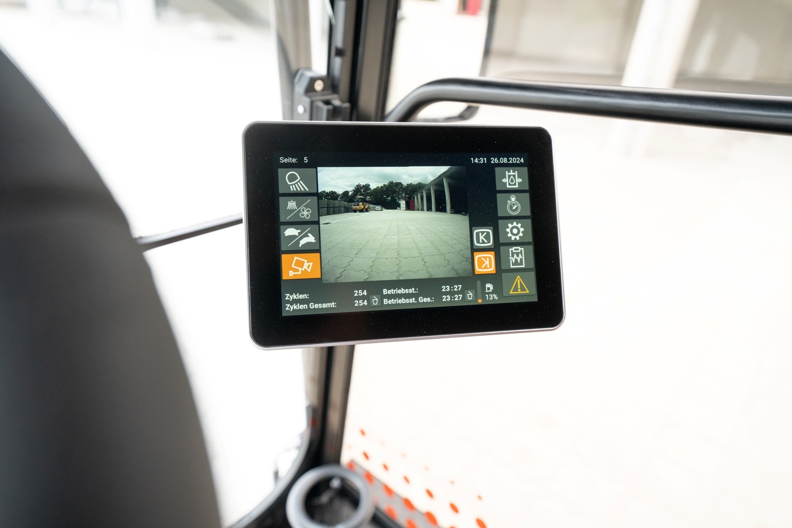 - 7-calowy wyświetlacz – pełna kontrola nad funkcjami maszyny, możliwość ustawienia 3 trybów jazdy: Podstawowy, Standardowy i Specjalny